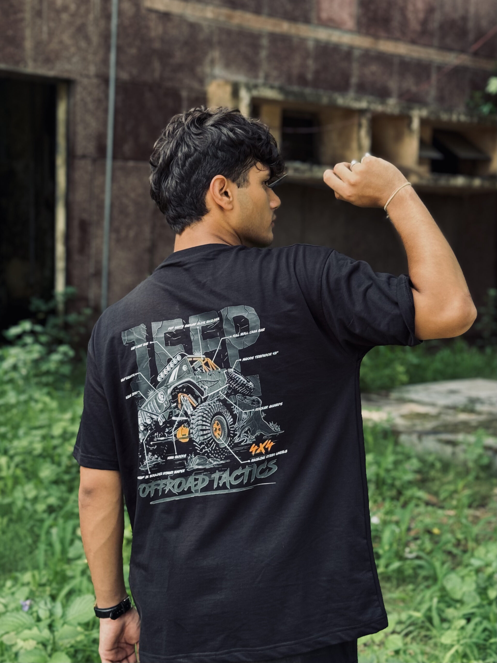 Black Oversized Graphic T‑Shirt (Truck Back Print, Utopian)