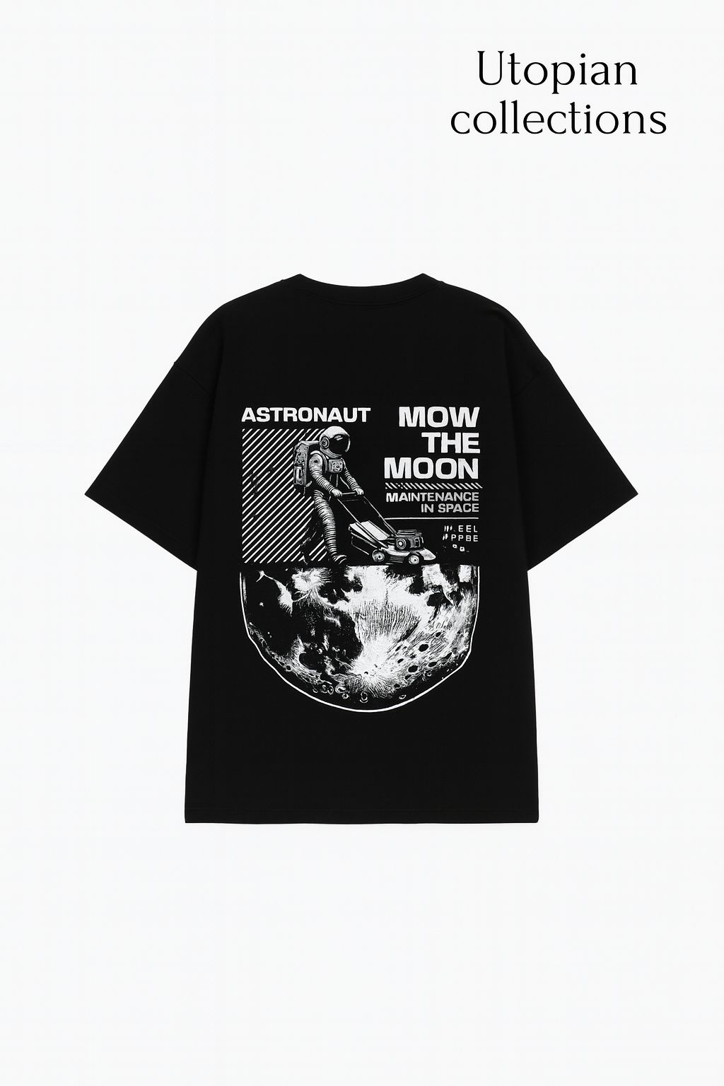 Black Oversized Graphic T‑Shirt (Mow the Moon Back Print)